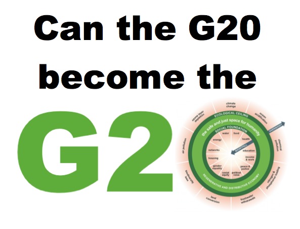This weekend the G20 are meeting in Argentina, with the aim (they say) of ‘building consensus for fair and sustainable development’. Since they collectively generate 85% of global GDP, whether they do or don’t transform their economies will profoundly affect us all. So how close to the Doughnut’s safe and just space are the G20?