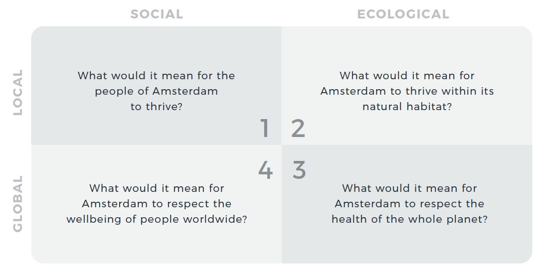 Today sees the launch of a new and holistic approach to downscaling the Doughnut, and we are confident that it has huge potential at multiple scales – from neighbourhood to nation – as a tool for transformative action. Amsterdam is a great place for launching this tool because this city has already placed the Doughnut at the heart of its long-term vision and policymaking, and is home to the Amsterdam Donut Coalition, a network of inspiring change-makers who are already putting the Doughnut into practice in their city.