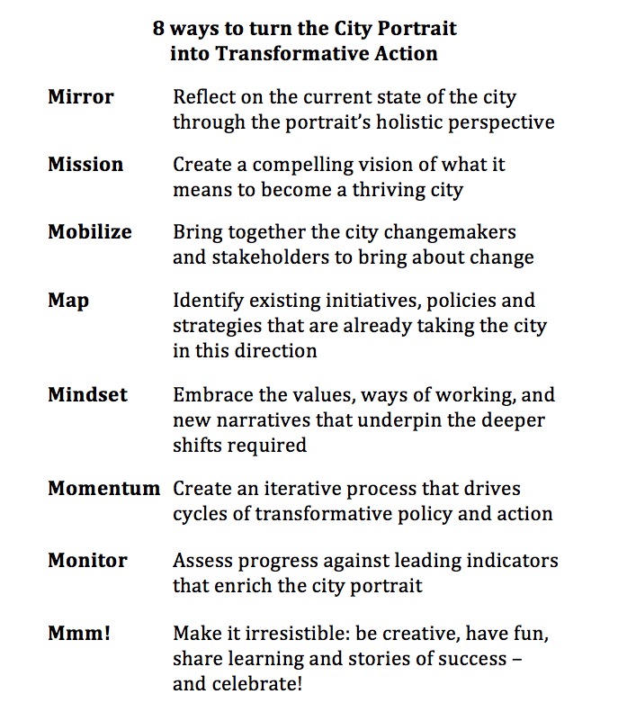I love the 8 ways to turn the city portrait into transformative action. I wonder if there’s room for a 9th.